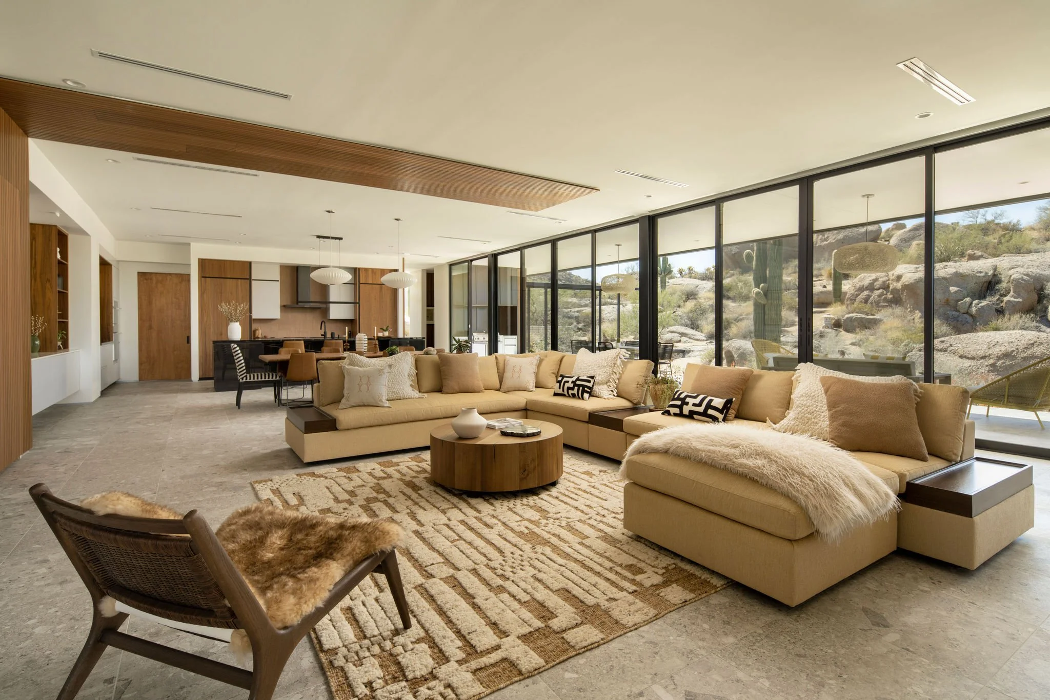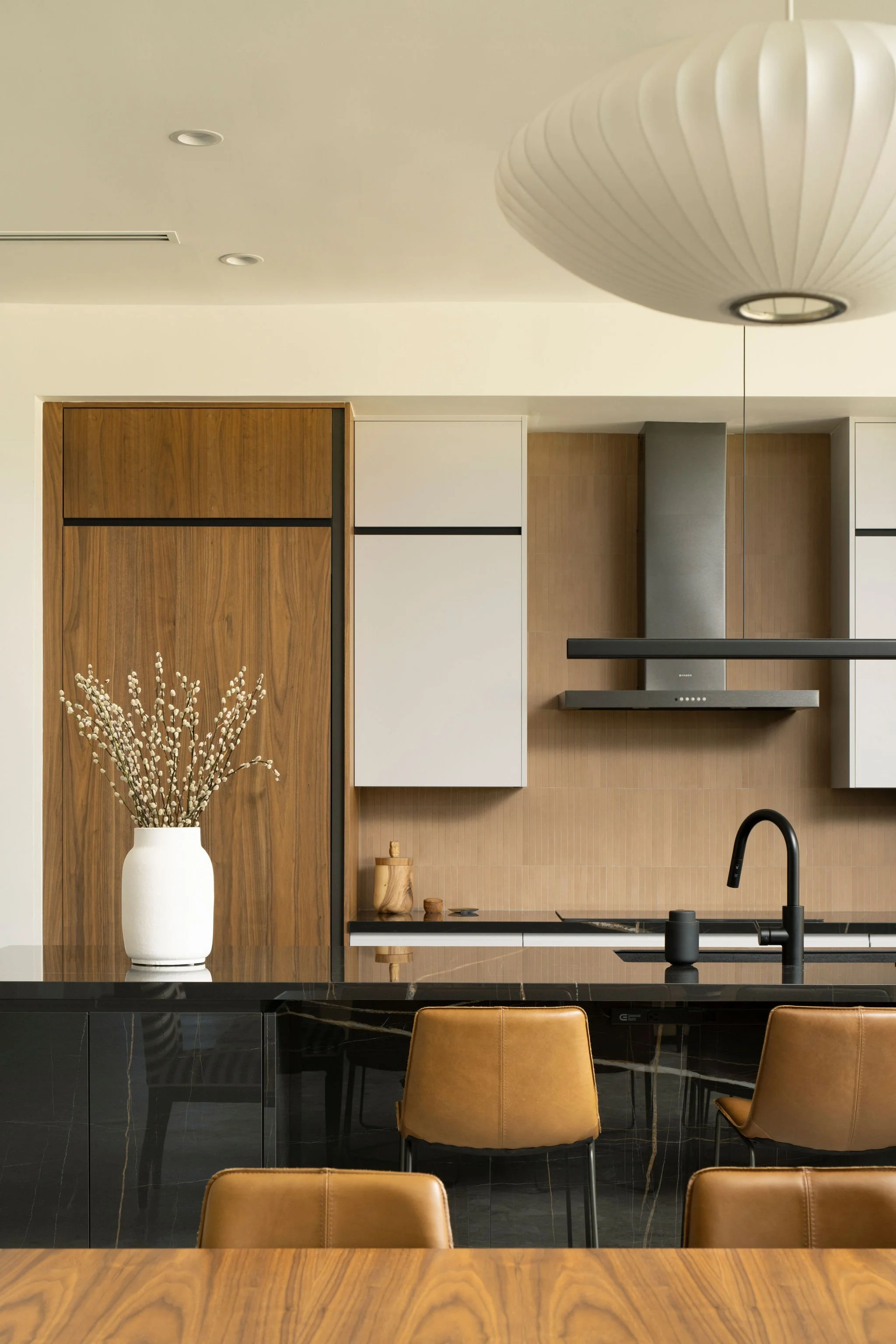 And they wanted a simple space to sink into their restorative years. A monochromatic palette of textures and color spread cohesively through the home; with specific details installed to create different zones of living space.